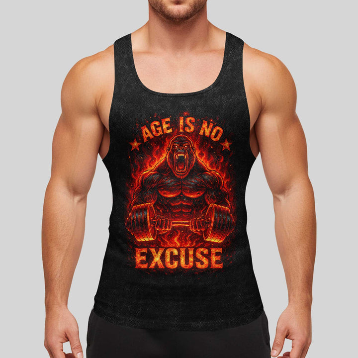 Age Is No Excuse Men's Gym Tank Top, Workout Tank, Oversized Tank