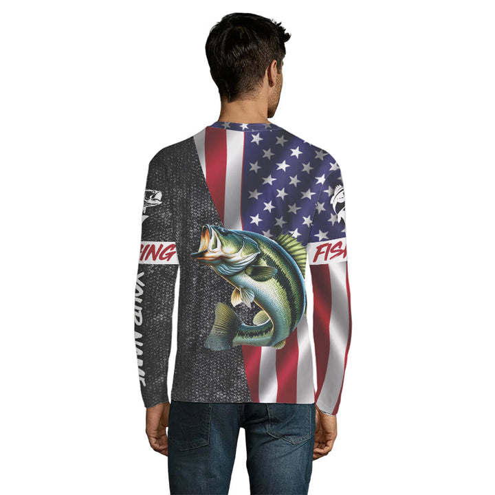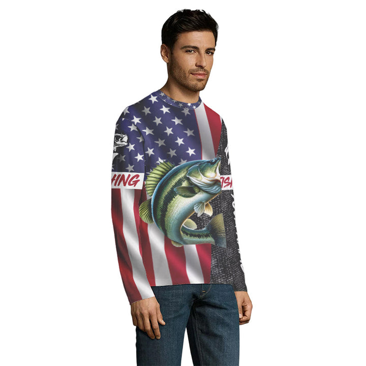 Bass Fishing American Flag Personalized Men Women Long Sleeve Shirt Team Jersey Custom Fishing Apparel