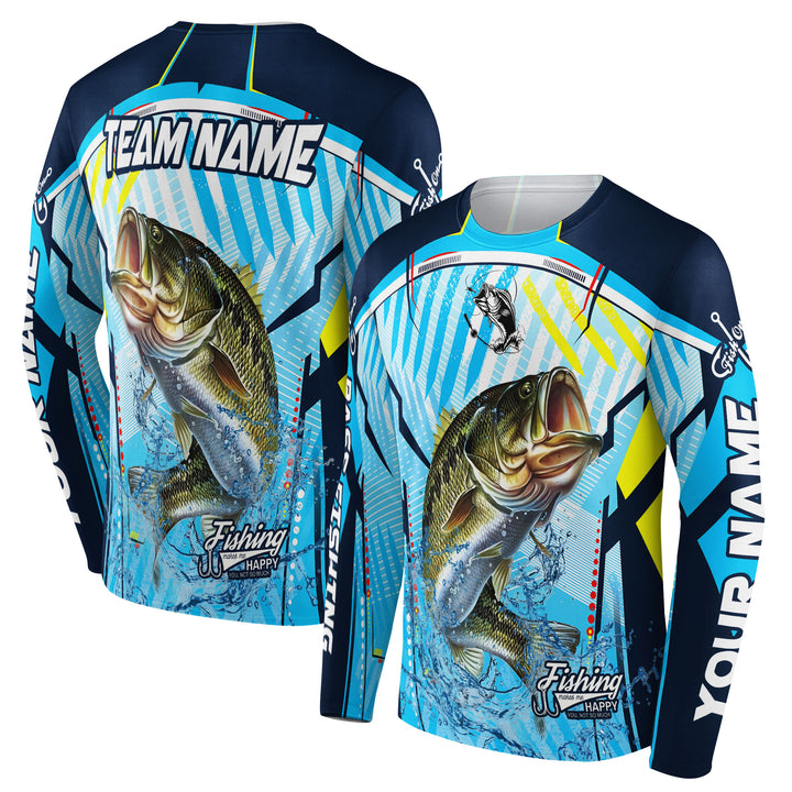 Bass Fishing Makes Me Happy Personalized Men Women Long Sleeve Shirt Custom Fishing Apparel