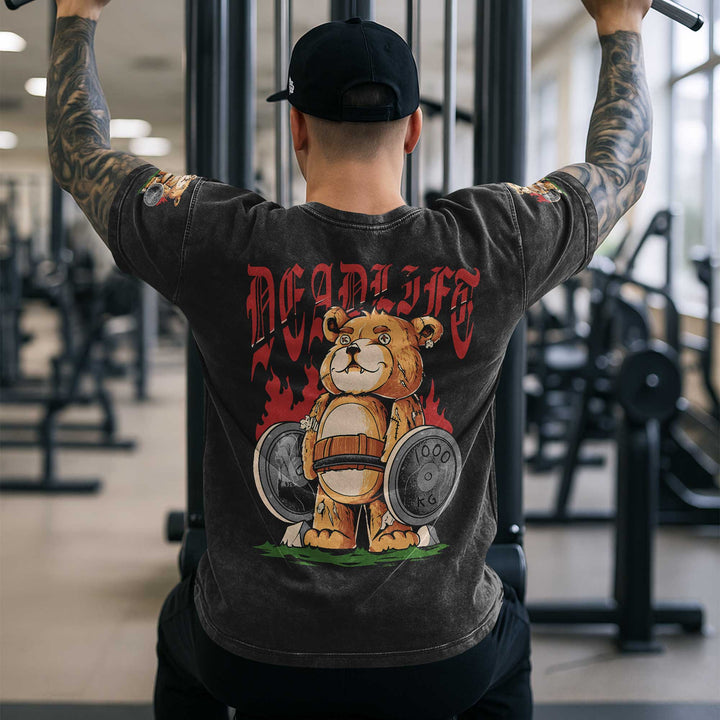 Bear Deadlift Men's Gym T-Shirt, Workout Shirt, Oversized Pump Cover Tee