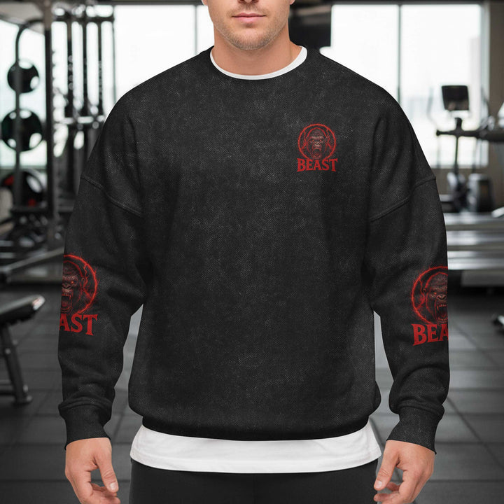 Beast Men's Gym Sweatshirt, Workout Shirt, Oversized Crewneck Sweatshirt