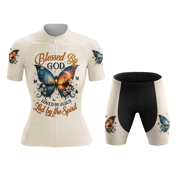 Blessed By God Butterfly Women's Cycling Jersey Set, Road Bike Cycling Kit for Women, Biking Outfit, Bicycle Suit, Team Racing Uniform