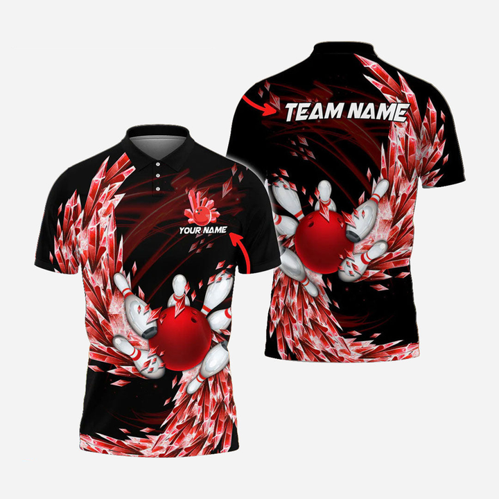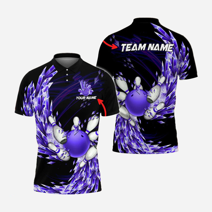 Bowling And Pins Crystal Personalized Men Women Polo Shirt Custom Bowling Team Jersey