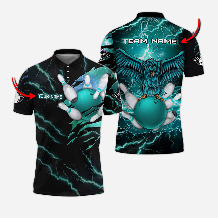 Bowling And Pins Eagle Personalized Men Women Polo Shirt Custom Bowling Team Jersey