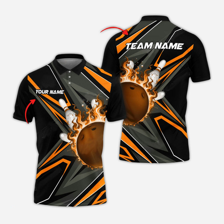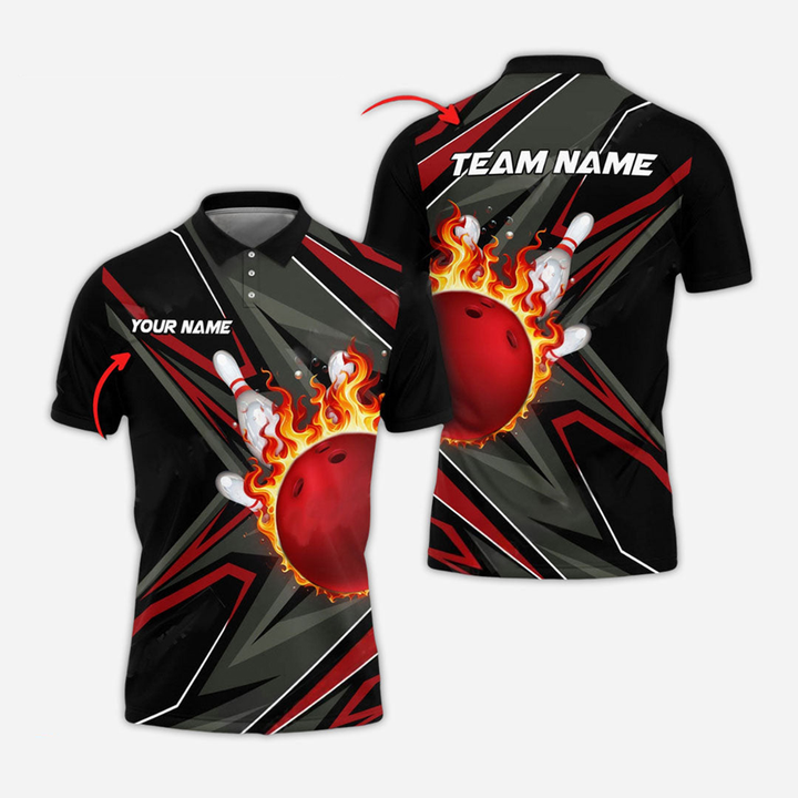Bowling And Pins Flame Personalized Men Women Polo Shirt Custom Bowling Team Jersey