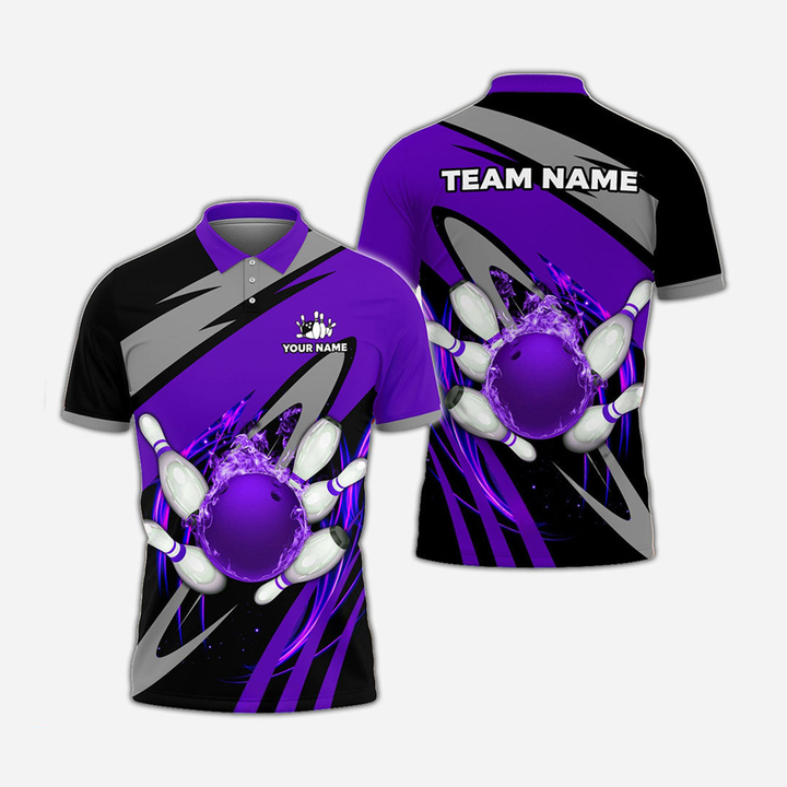 Bowling And Pins Flame Personalized Men Women Polo Shirt Custom Bowling Team Jersey