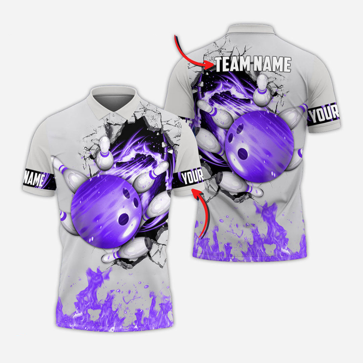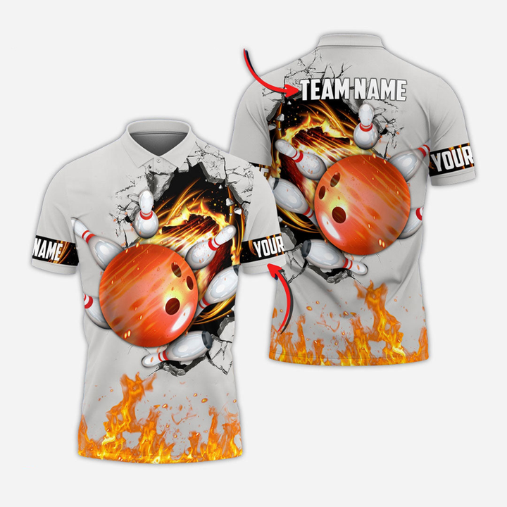 Bowling And Pins Flame Personalized Men Women Polo Shirt Custom Bowling Team Jersey