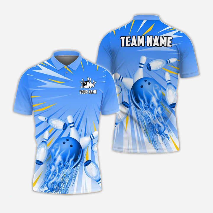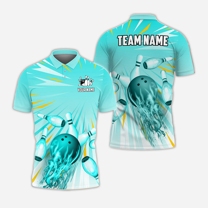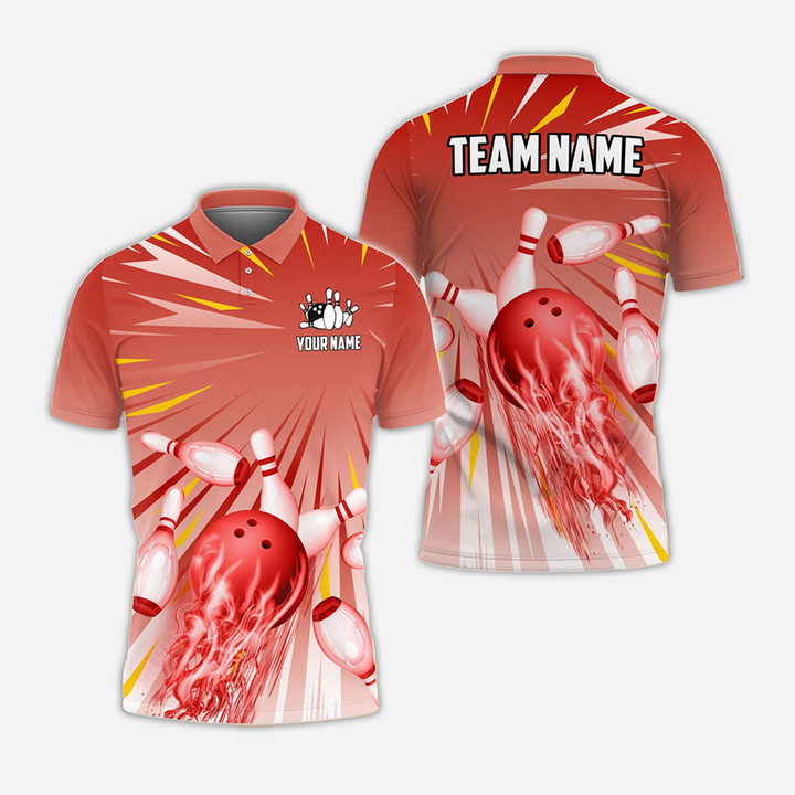 Bowling And Pins Flame Personalized Men Women Polo Shirt Custom Bowling Team Jersey