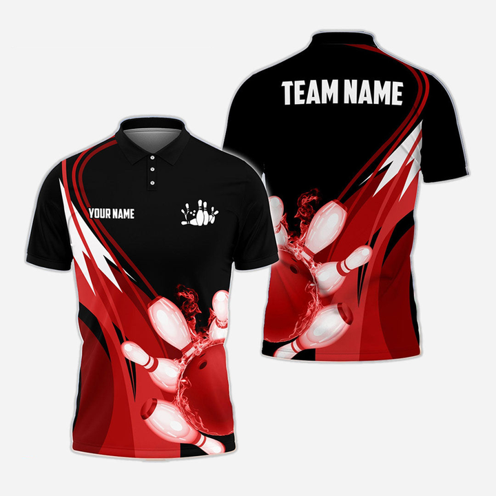 Bowling And Pins Flame Personalized Men Women Polo Shirt Custom Bowling Team Jersey