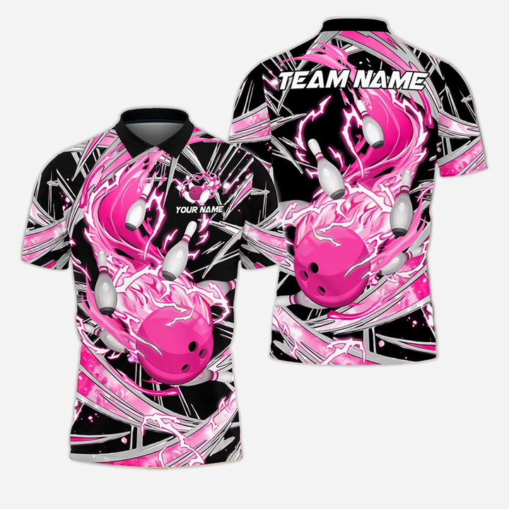 Bowling And Pins Flame Personalized Men Women Polo Shirt Custom Bowling Team Jersey