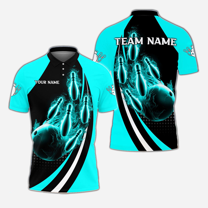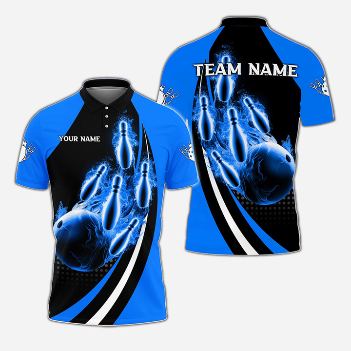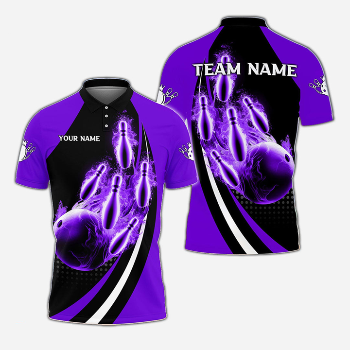 Bowling And Pins Flame Personalized Men Women Polo Shirt Custom Bowling Team Jersey