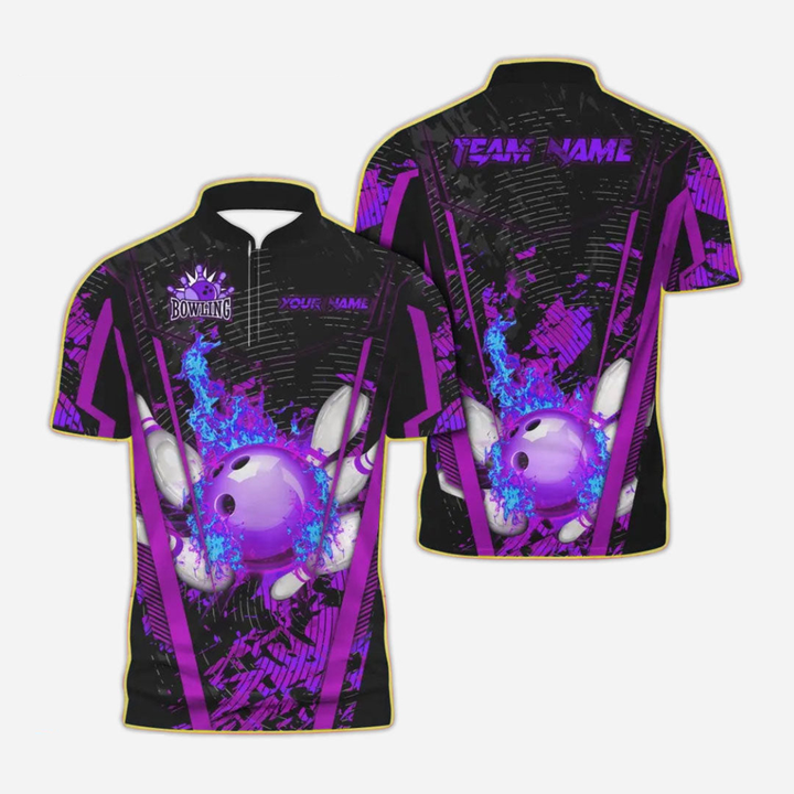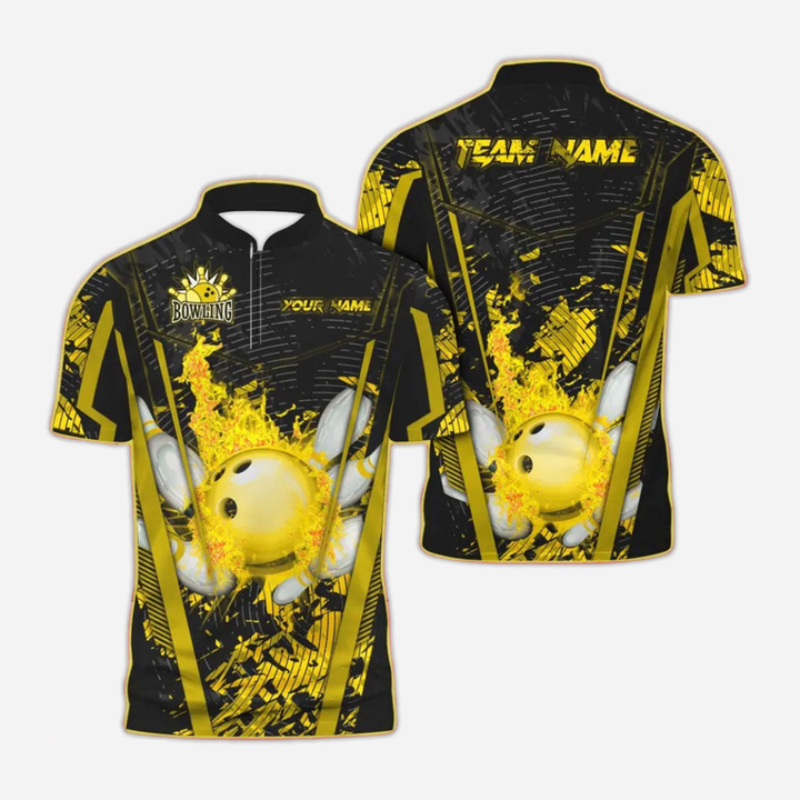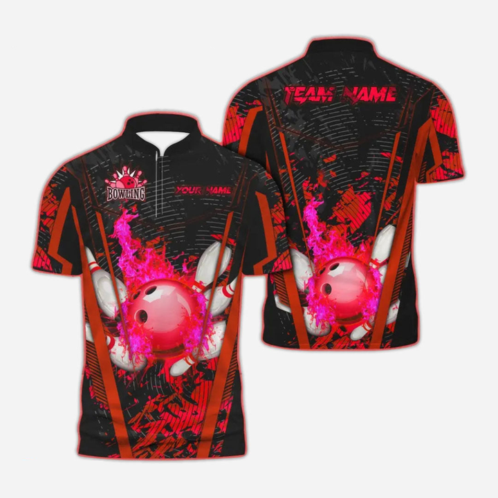Bowling And Pins Flame Personalized Men Women Polo Shirt Custom Bowling Team Jersey