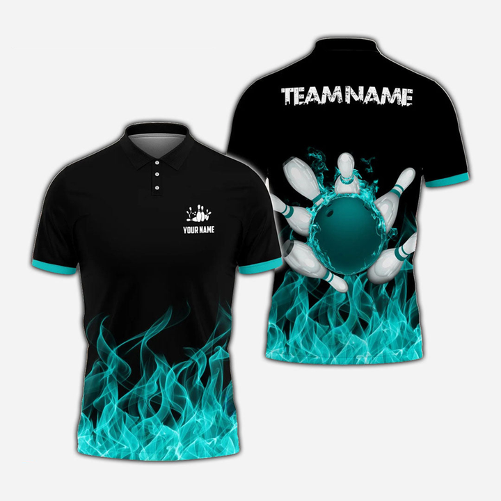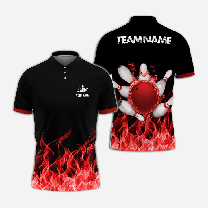 Bowling And Pins Flame Personalized Men Women Polo Shirt Custom Bowling Team Jersey