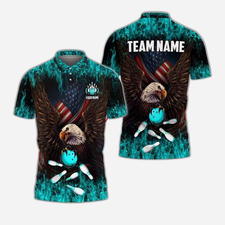 Bowling And Pins Eagle US Patriot Personalized Men Women Polo Shirt Custom Bowling Team Jersey