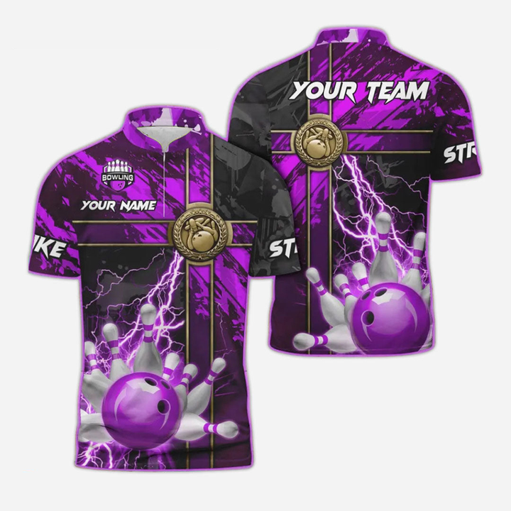 Bowling And Pins Lightning Personalized Men Women Polo Shirt Custom Bowling Team Jersey