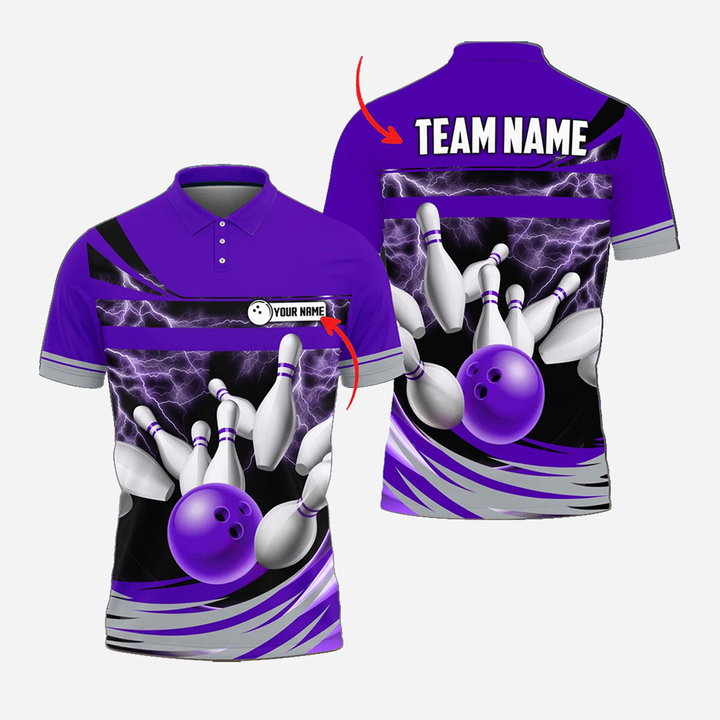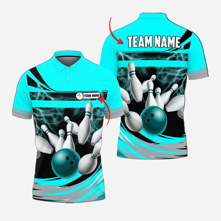 Bowling And Pins Lightning Personalized Men Women Polo Shirt Custom Bowling Team Jersey