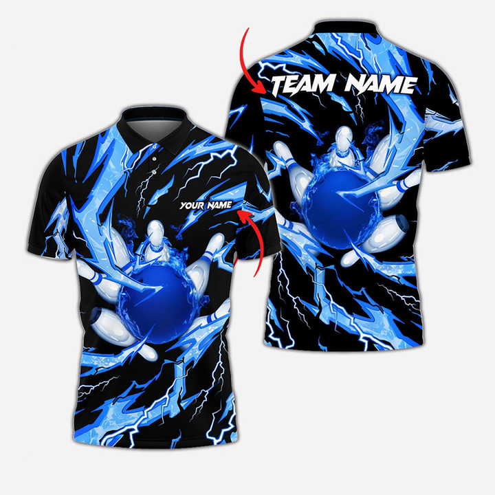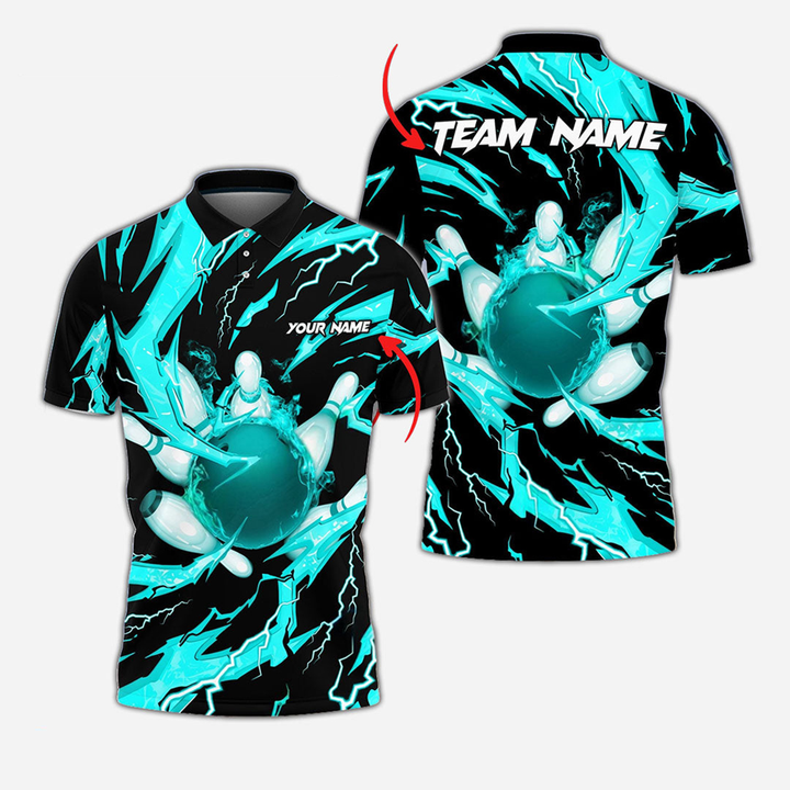 Bowling And Pins Lightning Personalized Men Women Polo Shirt Custom Bowling Team Jersey