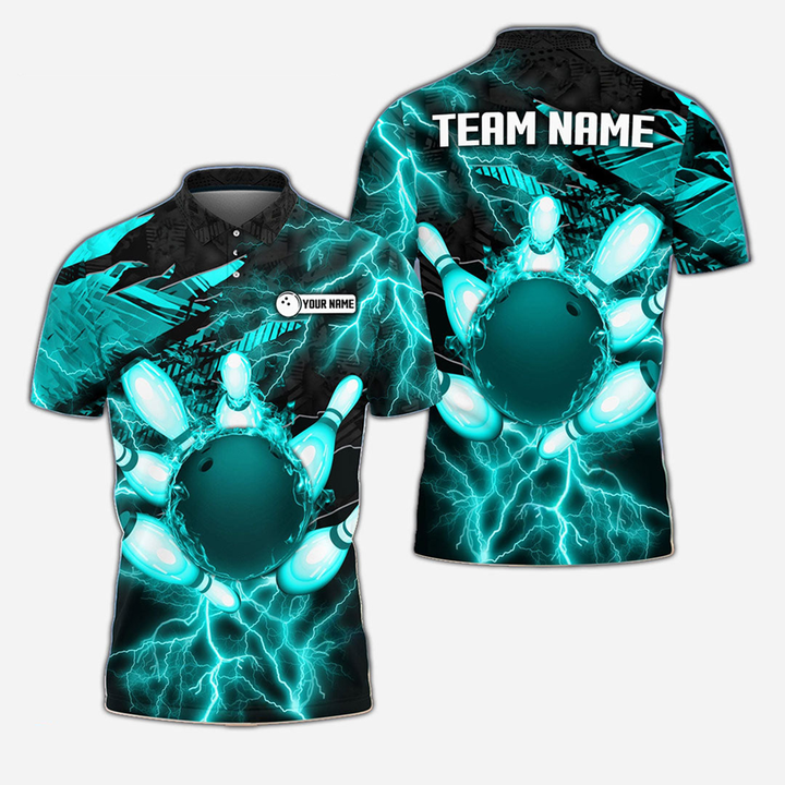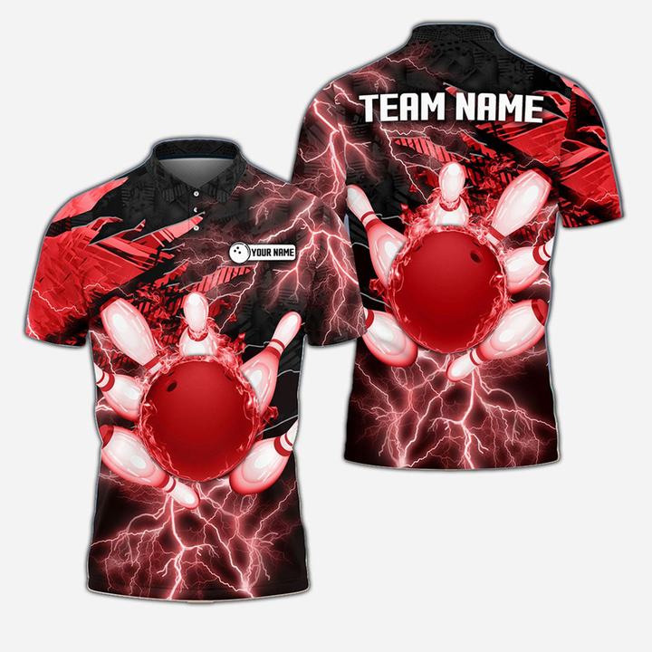 Bowling And Pins Lightning Personalized Men Women Polo Shirt Custom Bowling Team Jersey