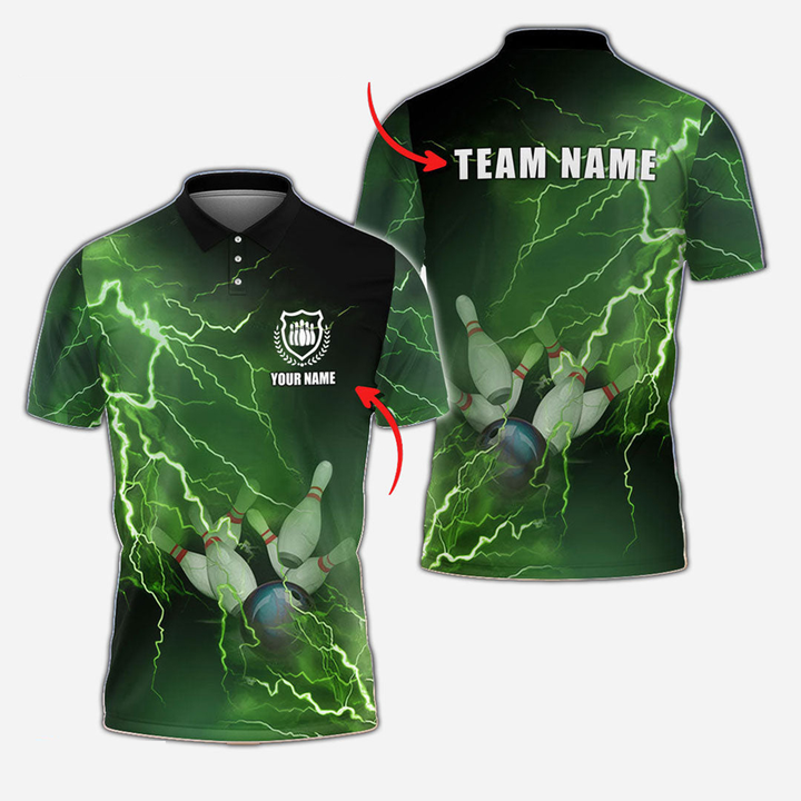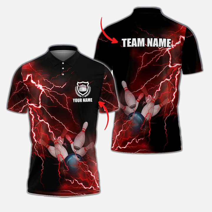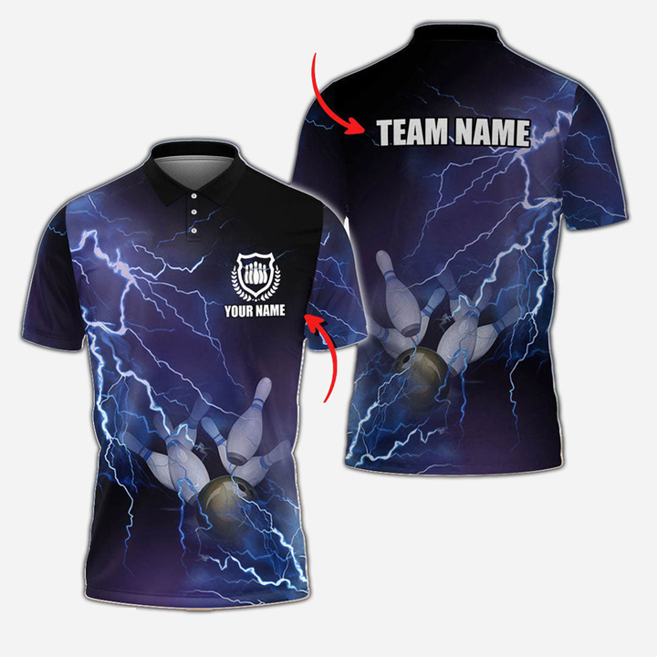 Bowling And Pins Lightning Personalized Men Women Polo Shirt Custom Bowling Team Jersey