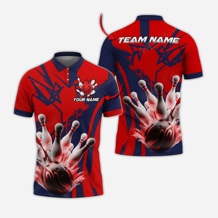 Bowling And Pins Personalized Men Women Polo Shirt Custom Bowling Team Jersey