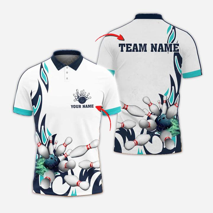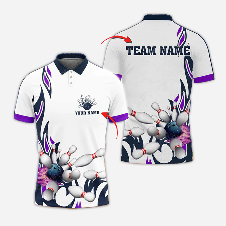 Bowling And Pins Personalized Men Women Polo Shirt Custom Bowling Team Jersey