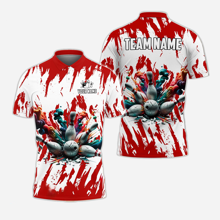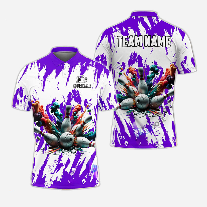 Bowling And Pins Personalized Men Women Polo Shirt Custom Bowling Team Jersey