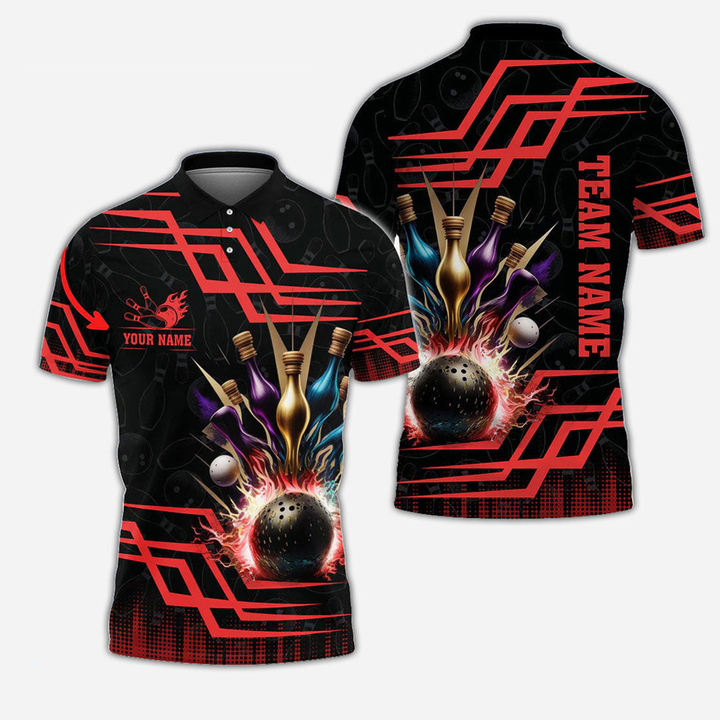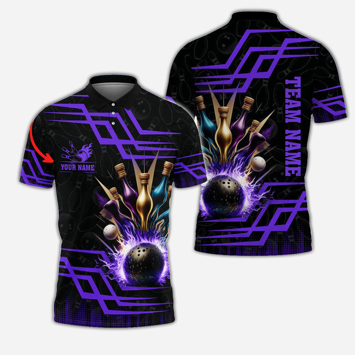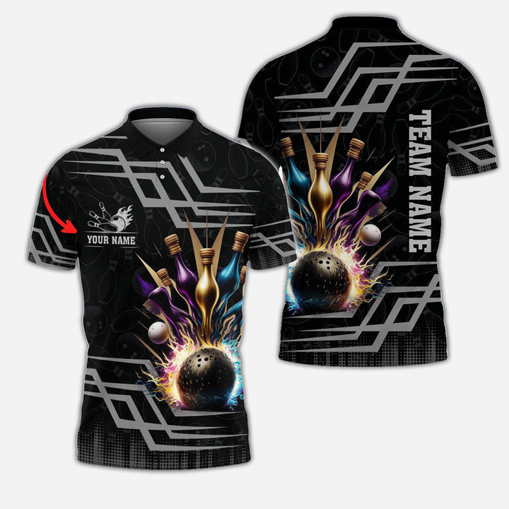 Bowling And Pins Personalized Men Women Polo Shirt Custom Bowling Team Jersey