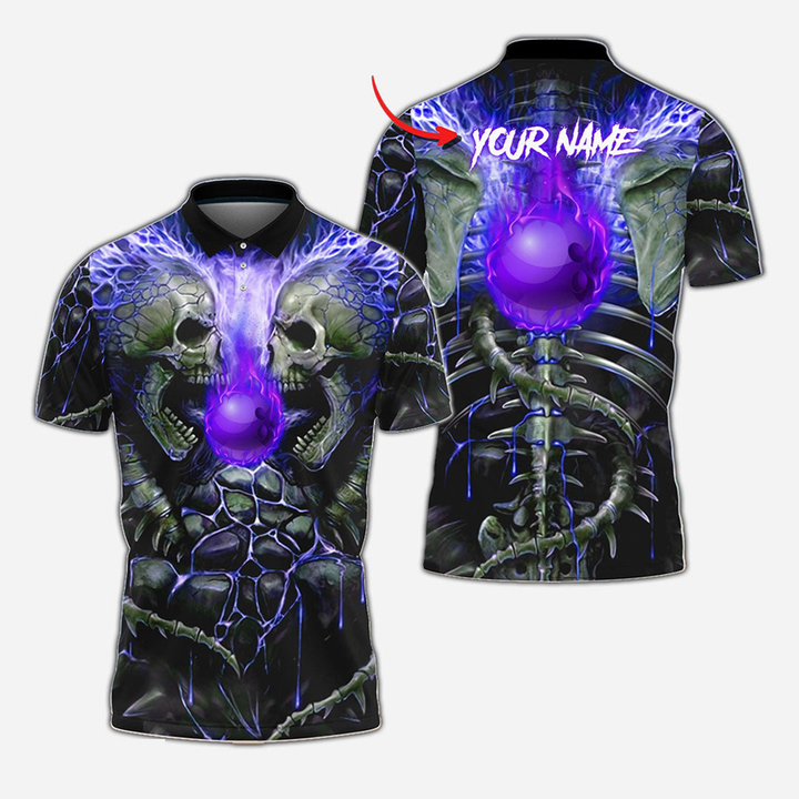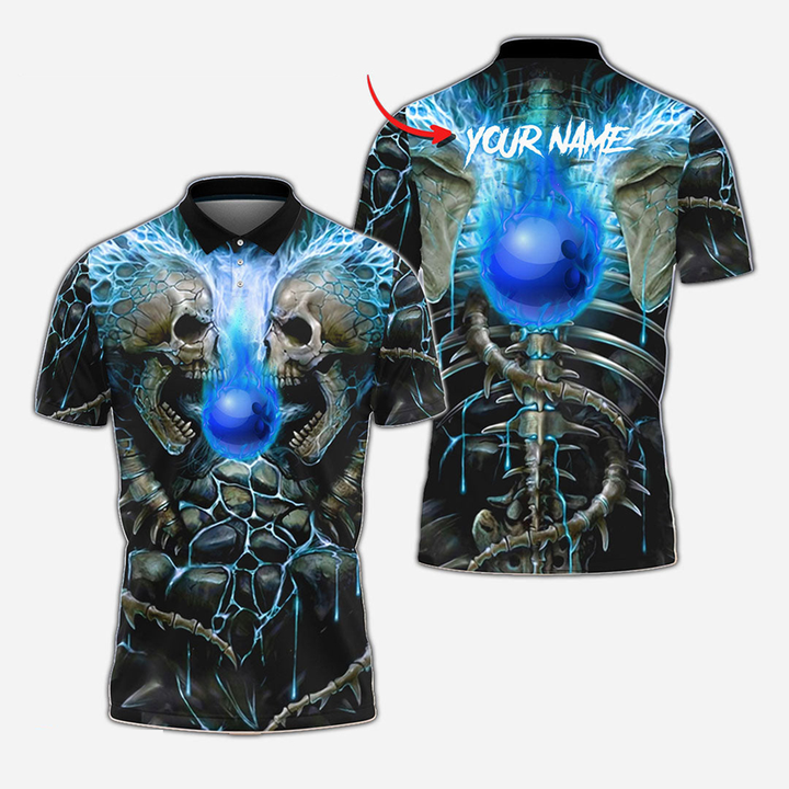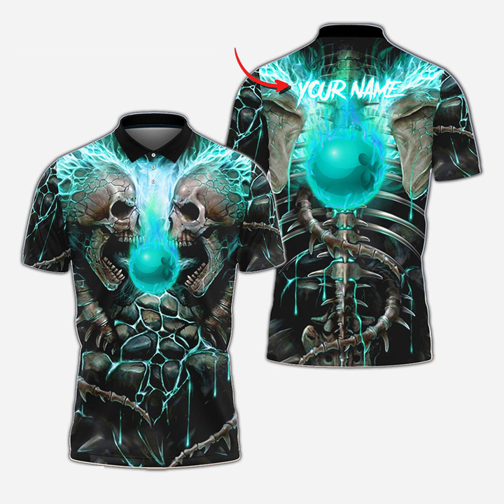 Bowling And Pins Skull Flame Personalized Men Women Polo Shirt Custom Bowling Team Jersey