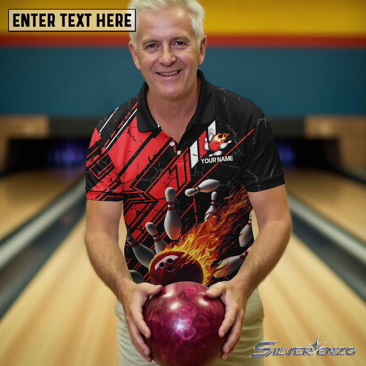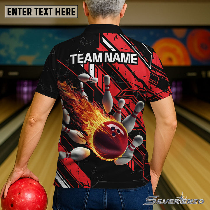 Bowling And Pins Red Flame Personalized Men Women Polo Shirt Custom Bowling Team Jersey
