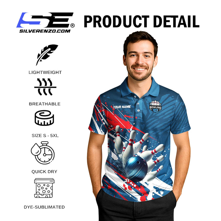 Bowling And Pins Strike Personalized Men Women Polo Shirt Custom Bowling Team Jersey