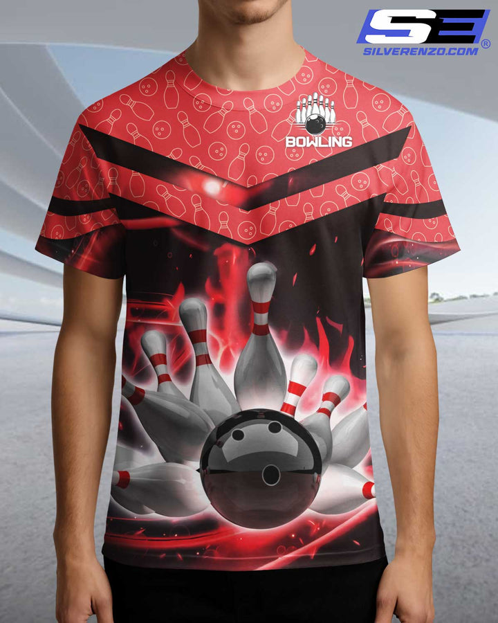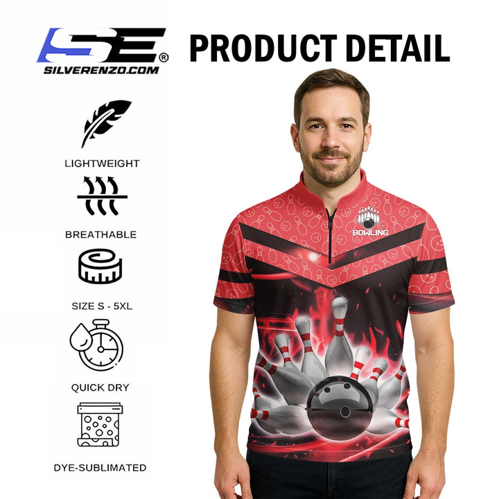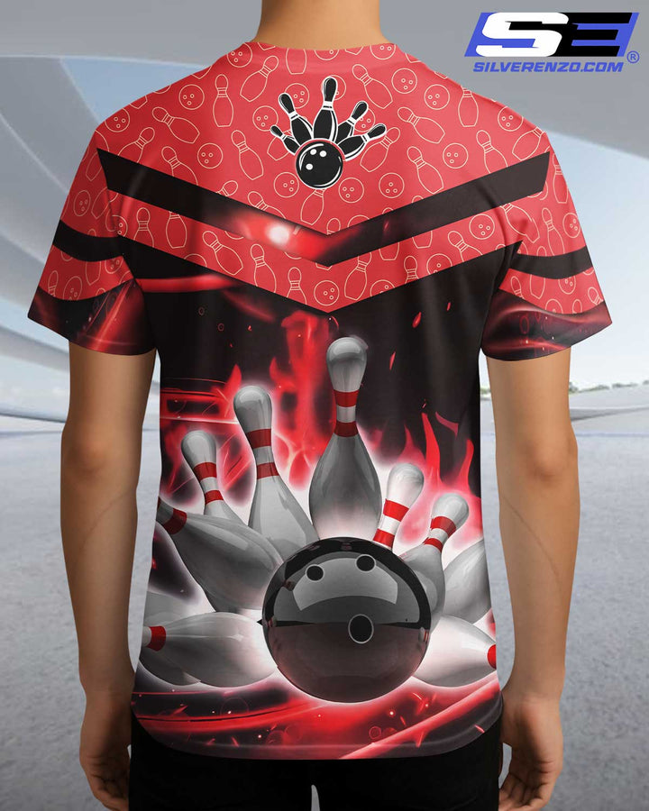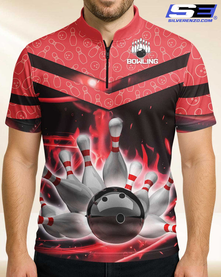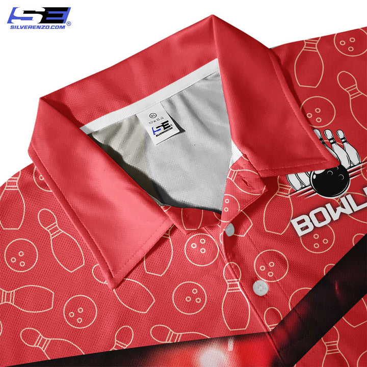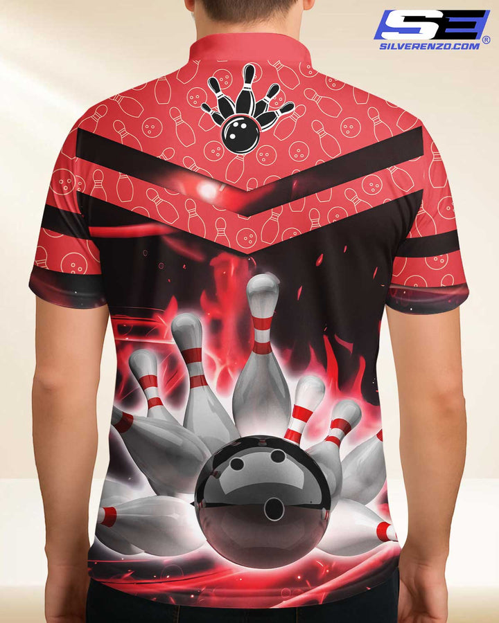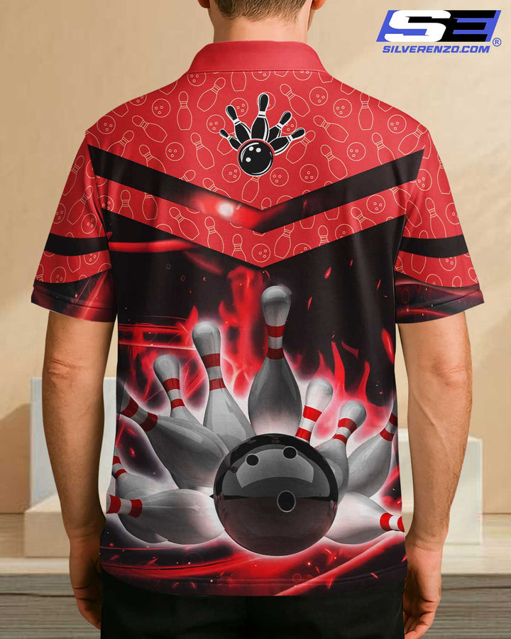 Personalized Bowling And Pins Flame Men Women Polo Shirt Custom Name Bowling Team Jersey