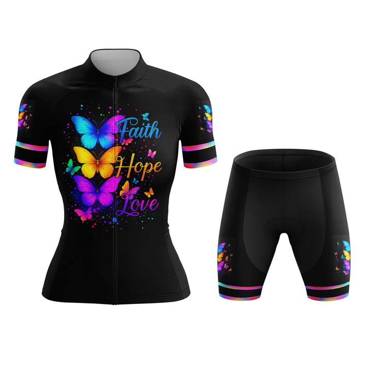 Butterfly Faith Hope Love Women's Cycling Jersey Set, Road Bike Cycling Kit for Women, Biking Outfit, Bicycle Suit, Team Racing Uniform