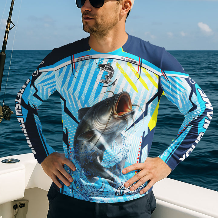 Catfish Fishing Makes Me Happy Personalized Men Women Long Sleeve Shirt Custom Fishing Apparel