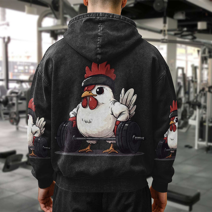 Chicken Lifting Men's Gym Hoodie, Workout Shirt, Oversized Pullover Hoodie