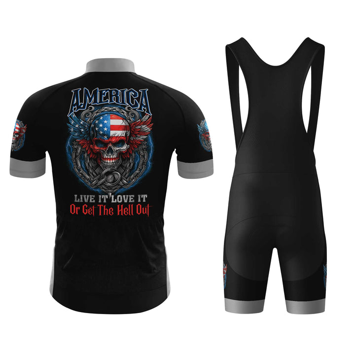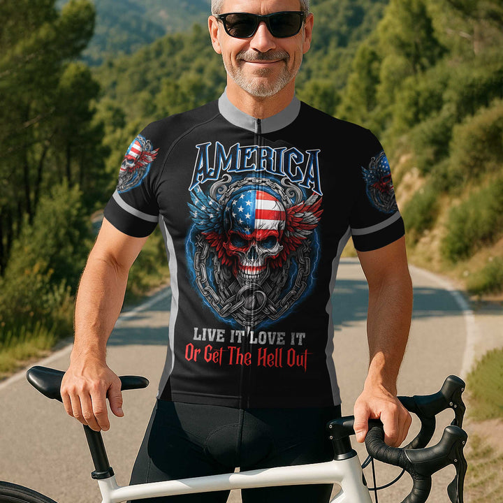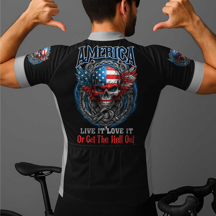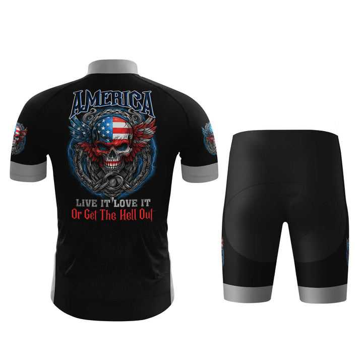 America Skull Men's Cycling Jersey Set, Road Bike Cycling Kit for Men, Biking Outfit, Bicycle Suit, Team Racing Uniform
