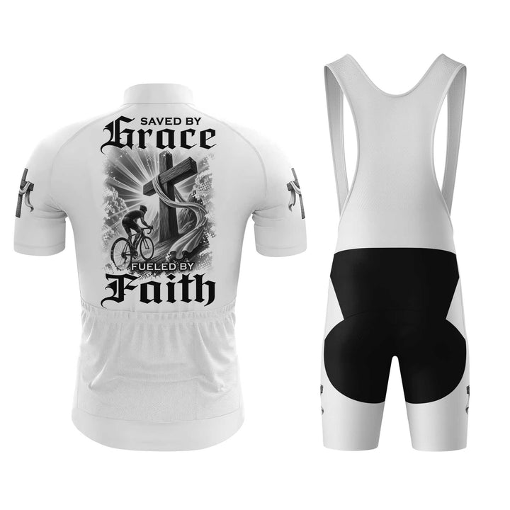 Saved By Grace Fueled By Faith Men's Cycling Jersey Set, Road Bike Cycling Kit for Men, Biking Outfit, Bicycle Suit, Team Racing Uniform