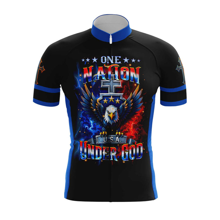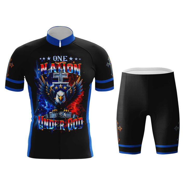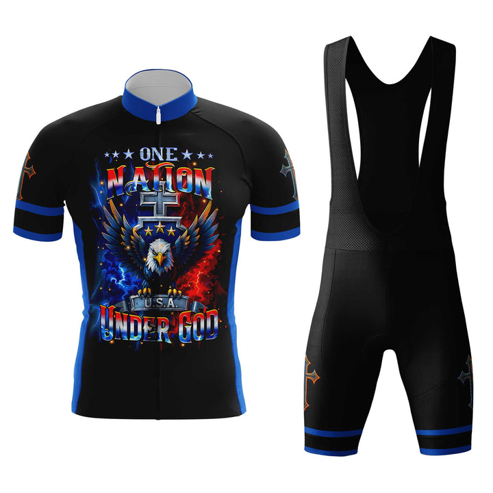 One Nation Under God Patriotic Men's Cycling Jersey Set, Road Bike Cycling Kit for Men, Biking Outfit, Bicycle Suit, Team Racing Uniform