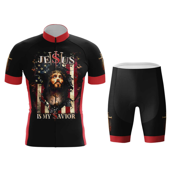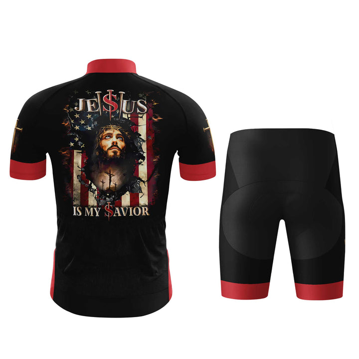 Jesus Is My Savior Men's Cycling Jersey Set, Road Bike Cycling Kit for Men, Biking Outfit, Bicycle Suit, Team Racing Uniform