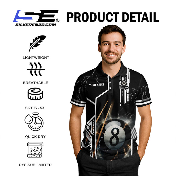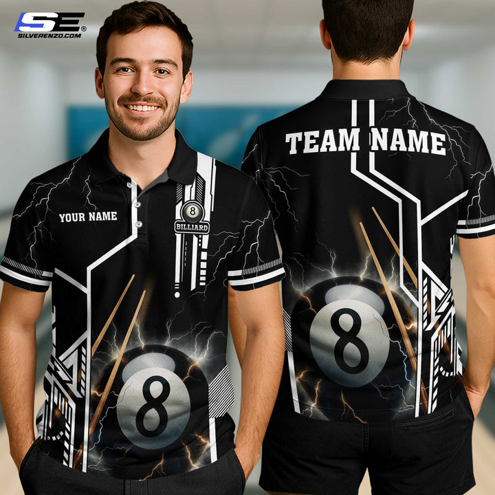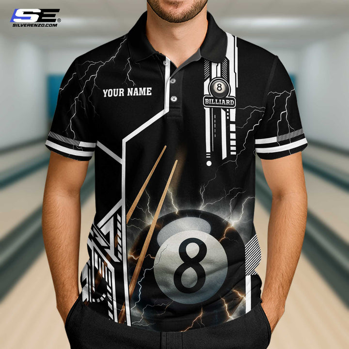 Custom Billiard 8 Ball Lightning Men Women Performance Polo Shirt Personalized Billiards Team Jersey