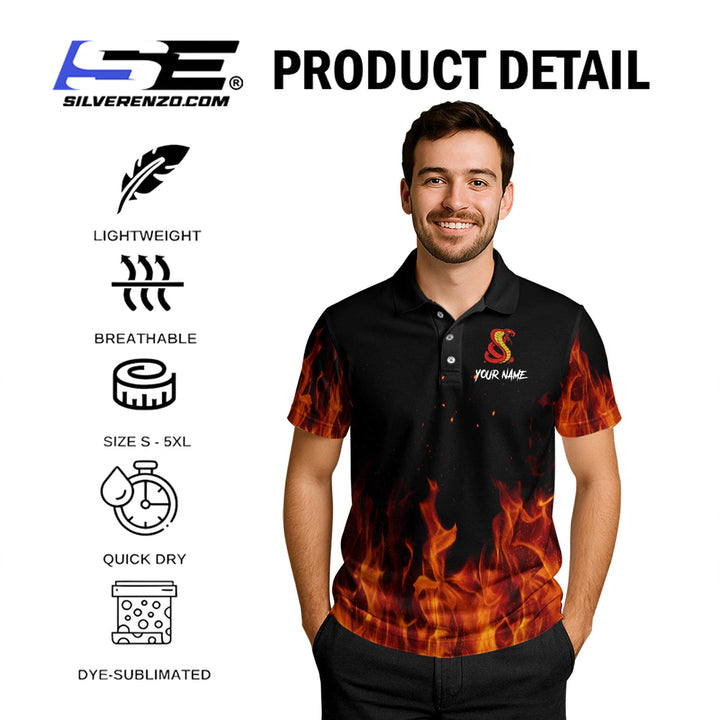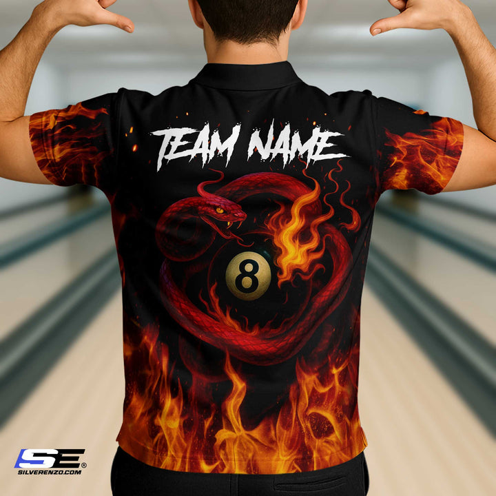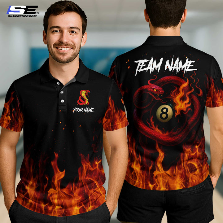 Custom Billiard Flame 8 Ball Snake Men Women Performance Polo Shirt Personalized Billiards Team Jersey