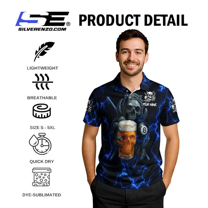 Custom Billiard Reaper And Beer Men Women Performance Polo Shirt Personalized Billiards Team Jersey