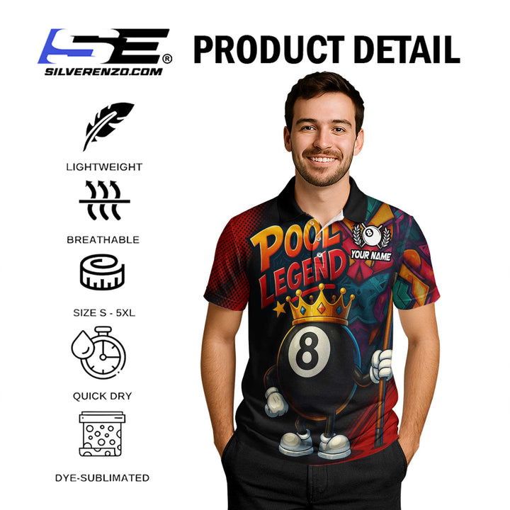 Custom Billiard 8 Ball Pool Legend Men Women Performance Polo Shirt Personalized Billiards Team Jersey