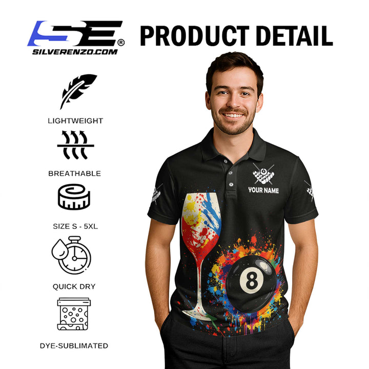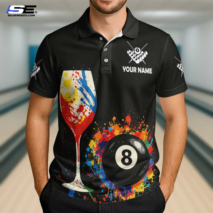 Custom Billiard 8 Ball White Splash Men Women Performance Polo Shirt Personalized Billiards Team Jersey