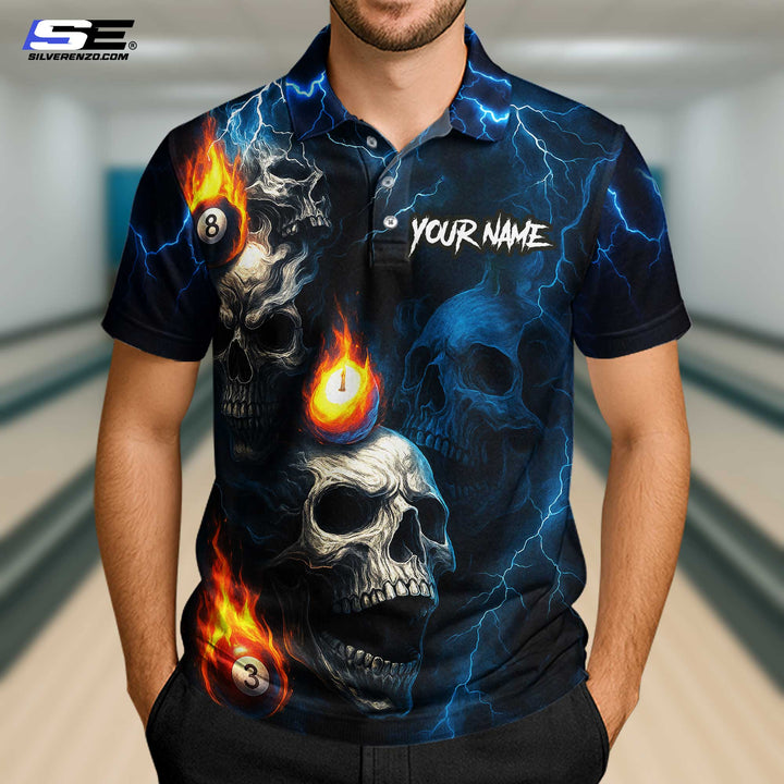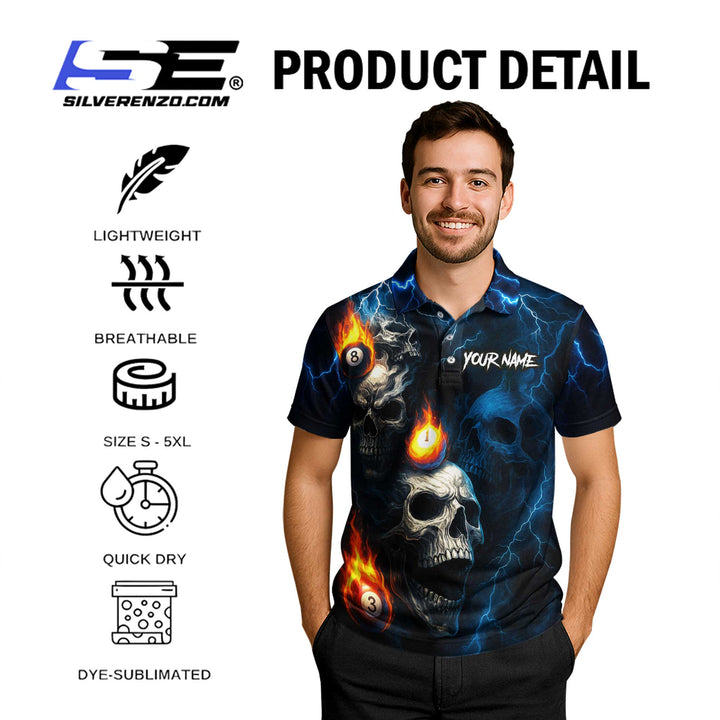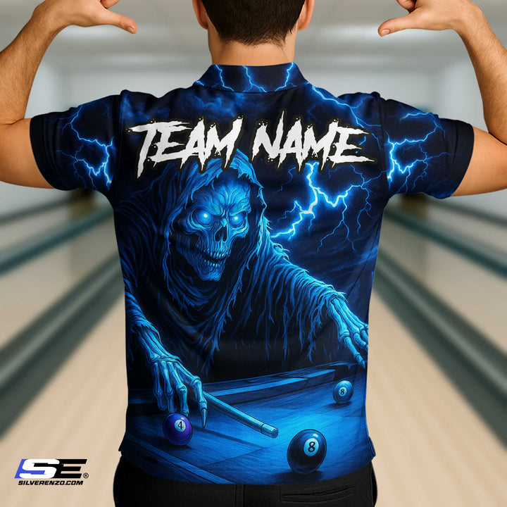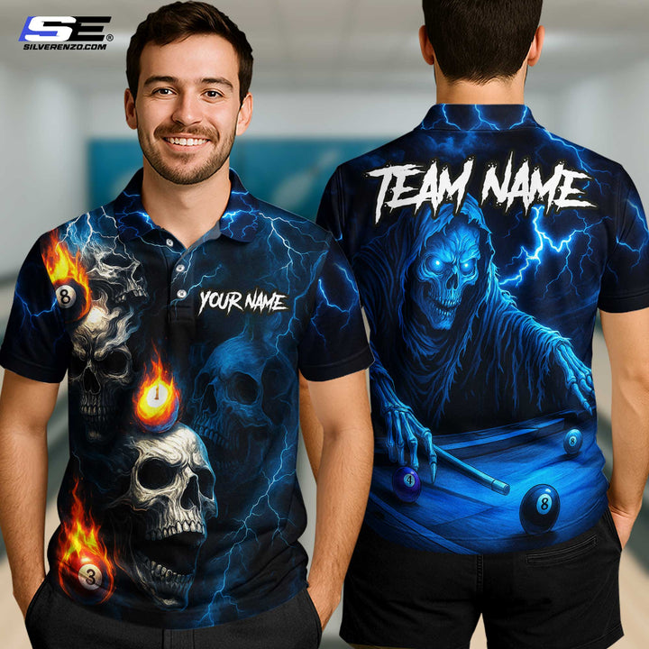 Custom Billiard Skull Reaper Ball Flaming Men Women Performance Polo Shirt Personalized Billiards Team Jersey
