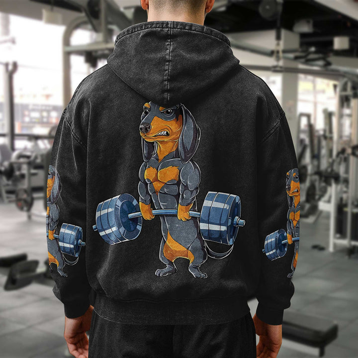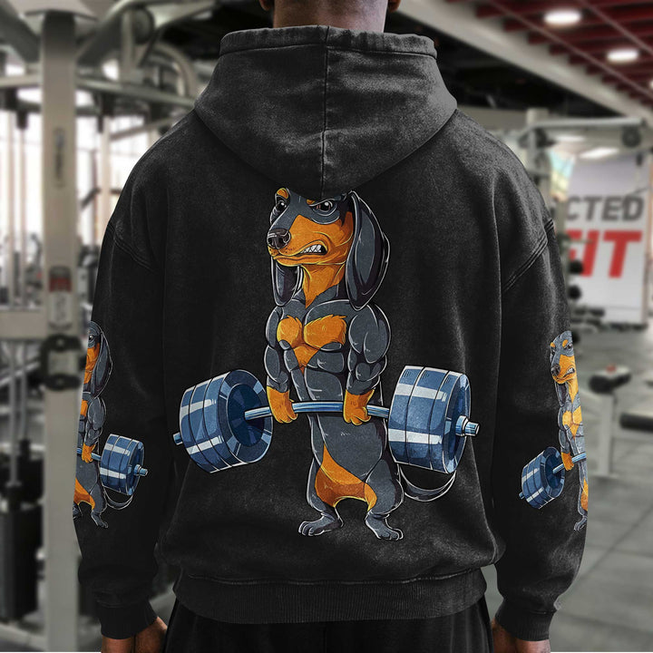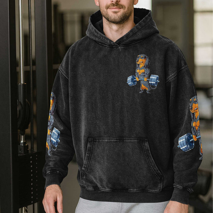Dachshund Lifting Men's Gym Hoodie, Workout Shirt, Oversized Pullover Hoodie