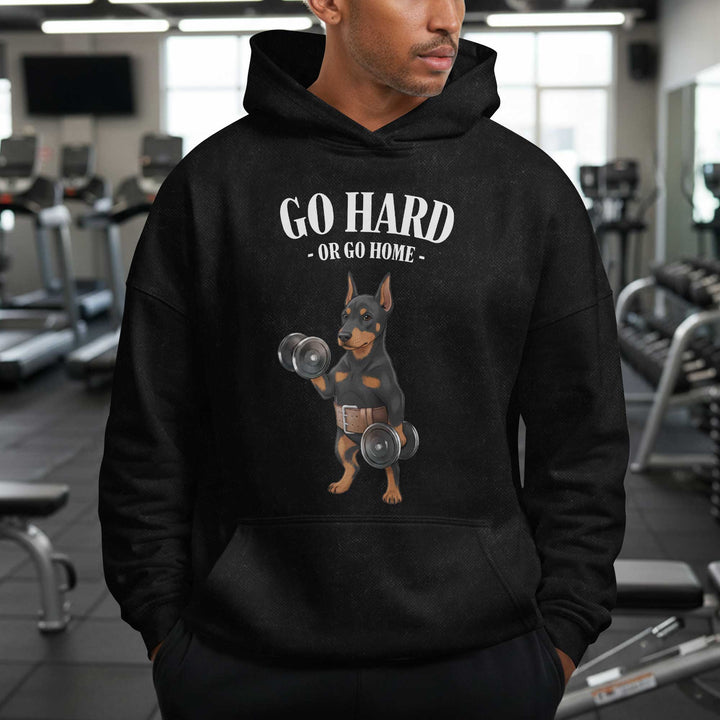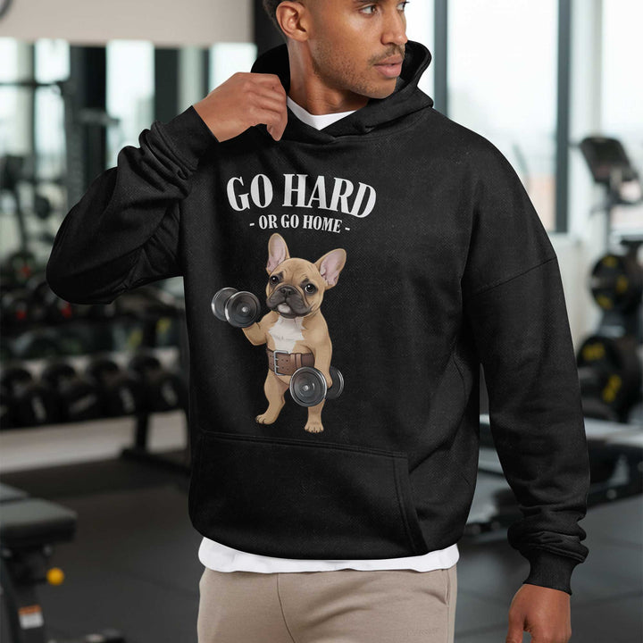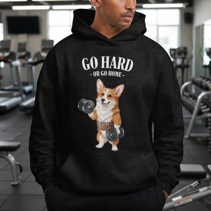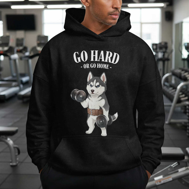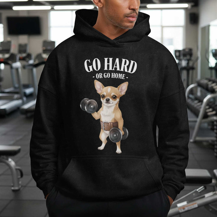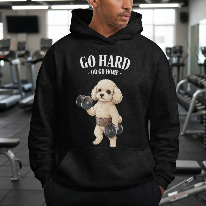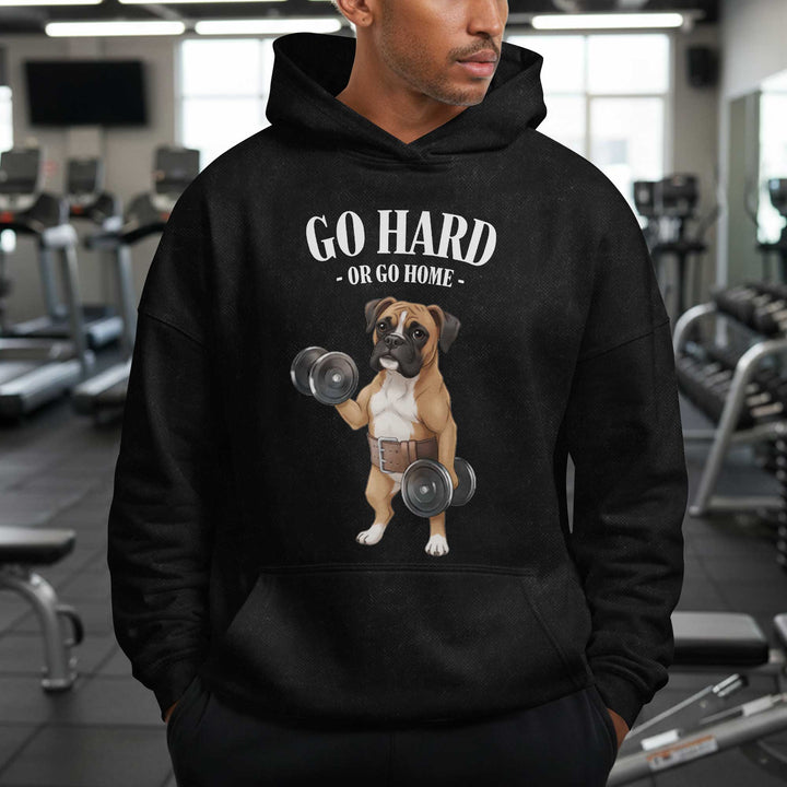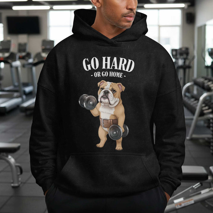 Go Hard Or Go Home Dog Men's Gym Hoodie, Workout Shirt, Oversized Pullover Hoodie