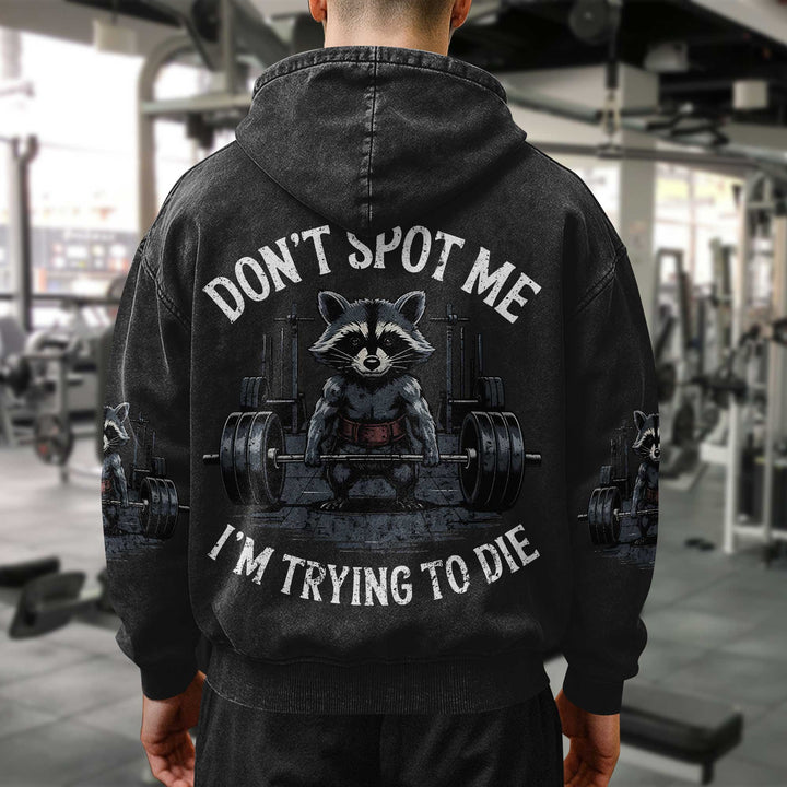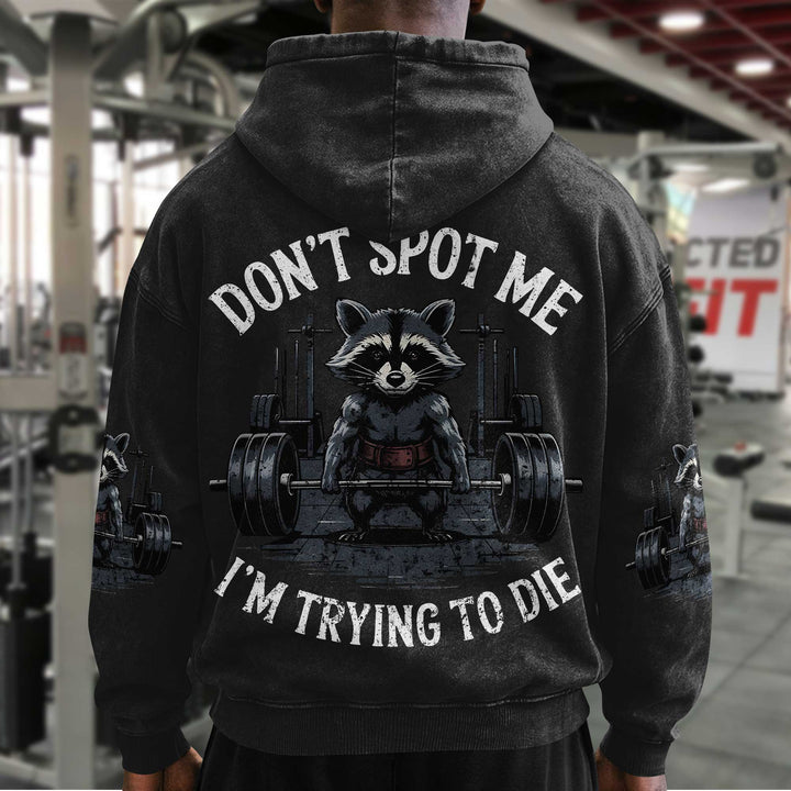 Don't Spot Me Racoon Men's Gym Hoodie, Workout Shirt, Oversized Pullover Hoodie