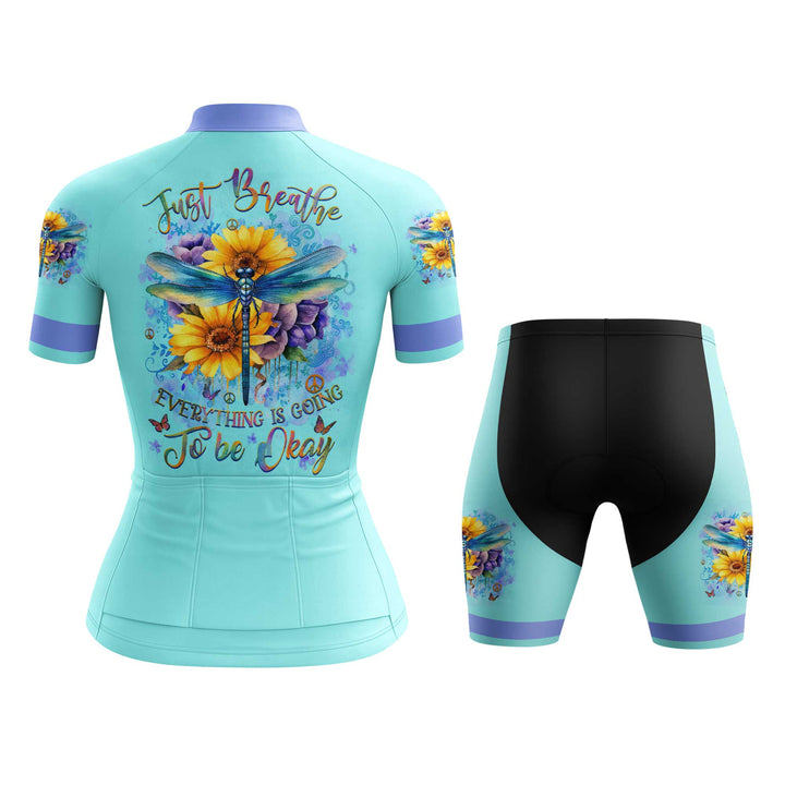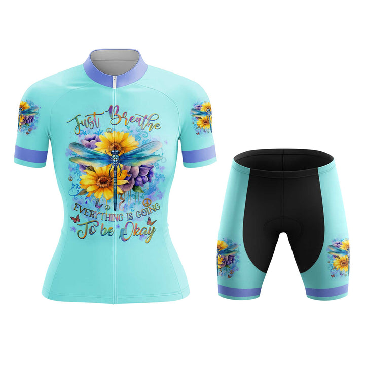 Dragonfly Sunflower Hippie Women's Cycling Jersey Set, Road Bike Cycling Kit for Women, Biking Outfit, Bicycle Suit, Team Racing Uniform