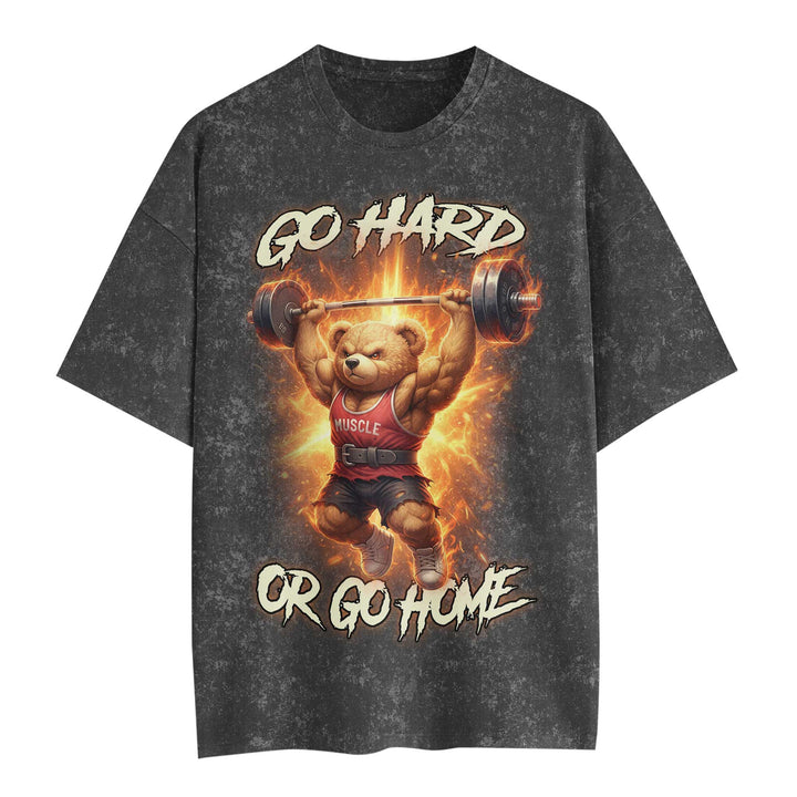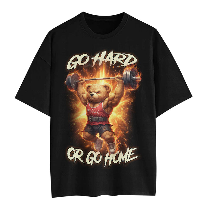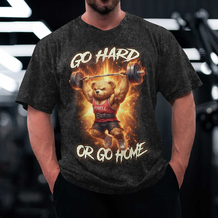 Go Hard Or Go Home Bear Men's Gym T-Shirt, Workout Shirt, Oversized Pump Cover Tee