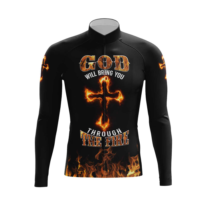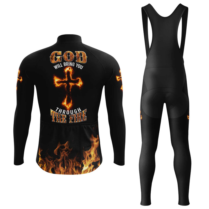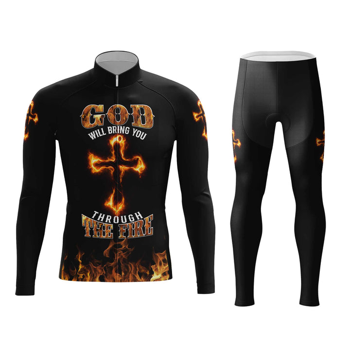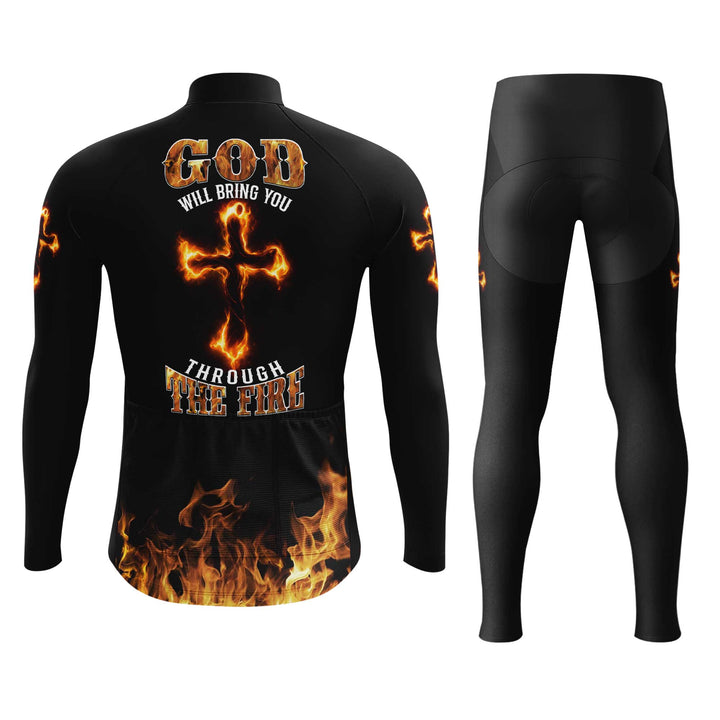 God Will Bring You Through Fire Men's Cycling Jersey Set, Road Bike Cycling Kit for Men, Biking Outfit, Bicycle Suit, Team Racing Uniform
